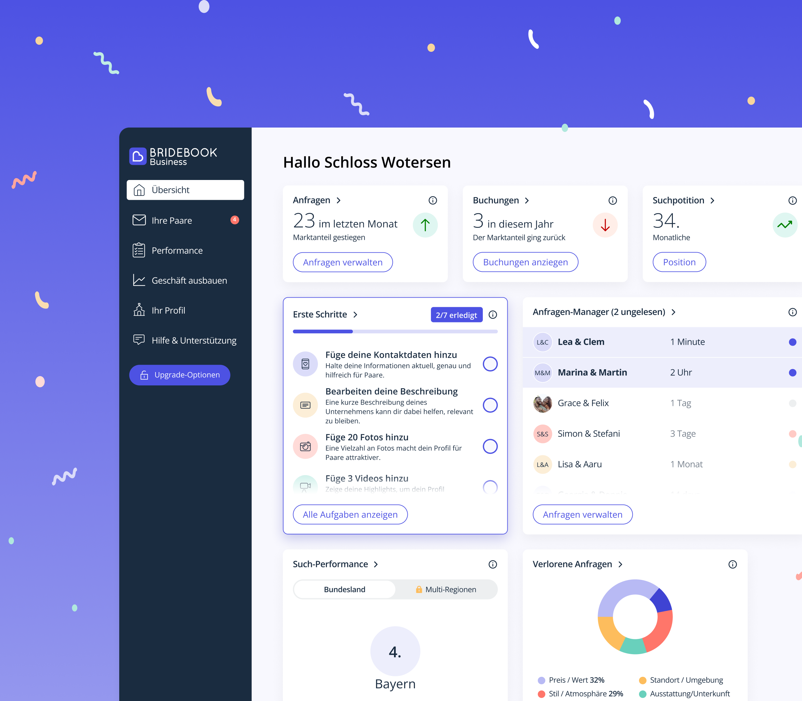 Wir haben das Feedback vieler Partner genutzt, um Bridebook einfacher und fokussierter zu gestalten, damit du dich auf das Wichtigste für dein Geschäft konzentrieren kannst.